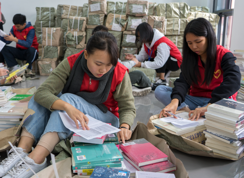 | 志愿者进行图书分类 |