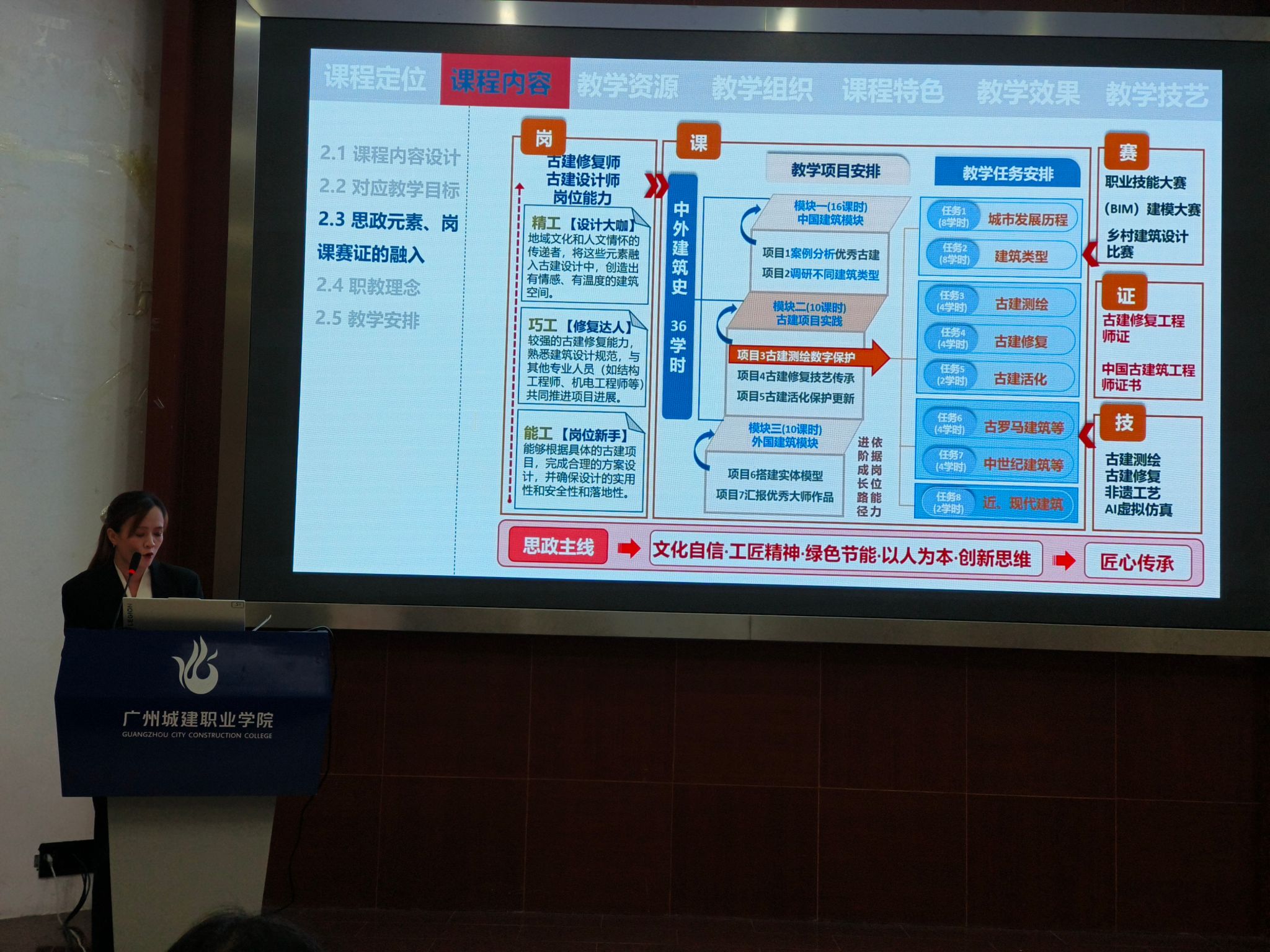 本次活动分为“说专业”与“说课程”两大板块。首先开展的是说专业,由8位专业负责人围绕专业定位与产业对接、课程体系与教学改革、师资队伍与教学能力、产教融合与校企合作、人才培养成效与特色创新等方面进行说专业。随后,14名由教研室初选后推选院内说课的专业教师则围绕课程定位、课程内容、教学资源、教学组织、课程特色、教学效果及教学技艺等方面说课。比赛重点考察了教师对课程标准的理解与落实,课程思政元素的有机融合、信息技术与课堂教学的深度融合、教学设计和科学性和创新性。