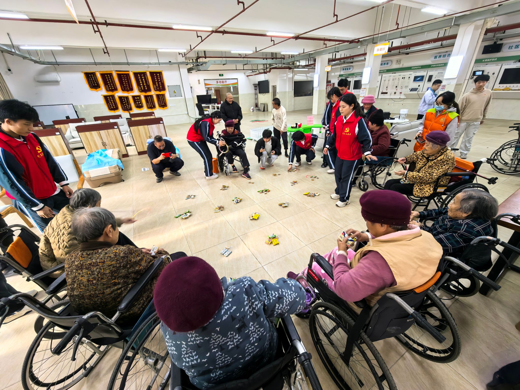 联欢会后,志愿者们准备了投壶、套圈、搭纸牌等简易又有趣的游戏,老人们兴致勃勃地参与其中,现场欢声不断。大家在轻松愉悦的氛围中拉近了距离、增进了感情。